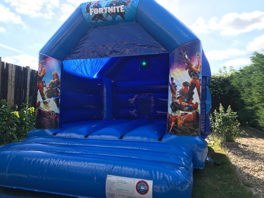 This Fortnite Theme Disco Bouncy Castle comes with a wireless sound system to play famous Fortnite tracks or any music you like, simply connect any Bluetooth device.