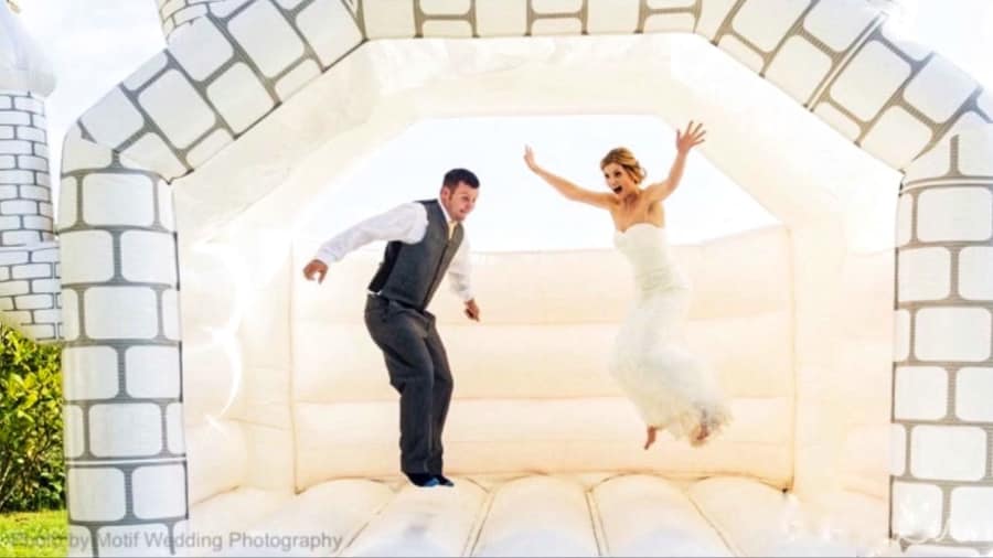 Our white bouncy castle is one of our most popular designs for weddings due to its perfect size, shape and colour. This bouncy castle is one that creates the most memories, it adds even more fun to already special days allowing both children and adults something to play on. A great inflatable available for hire in Gloucester, Cheltenham, Stroud, Tewkesbury and The Forest of Dean.